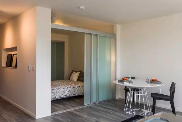 常规的小户型在做卧室与客厅的隔断时,如果按照封闭式的开关门设计,空间更容易显狭小,一些采光不好的户型,还容易遮挡采光。