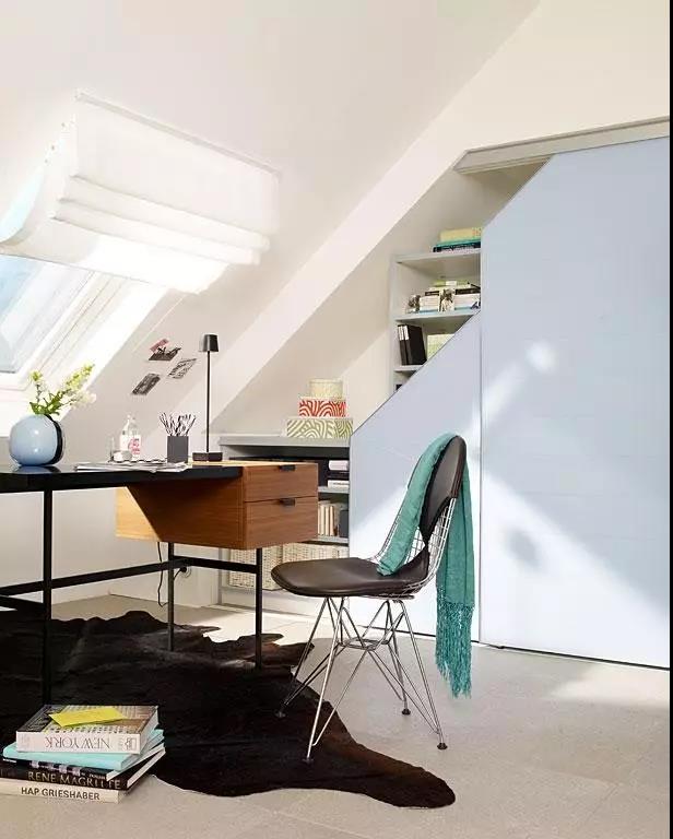 此外,一定要合理规划和布置阁楼的倾斜空间。尽量发挥结构本身的特点和风格,小小的空间依然拥有不一样的视界。