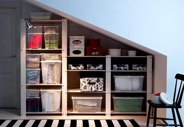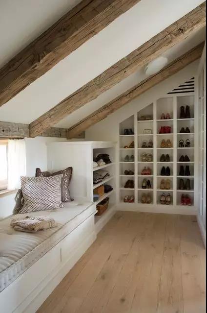 因为受到层高和形状的限制,阁楼收纳一般都在墙上寻找切入点,其中以嵌入式设计最为常见。
