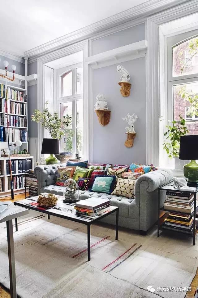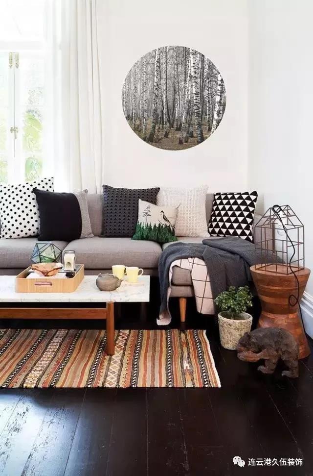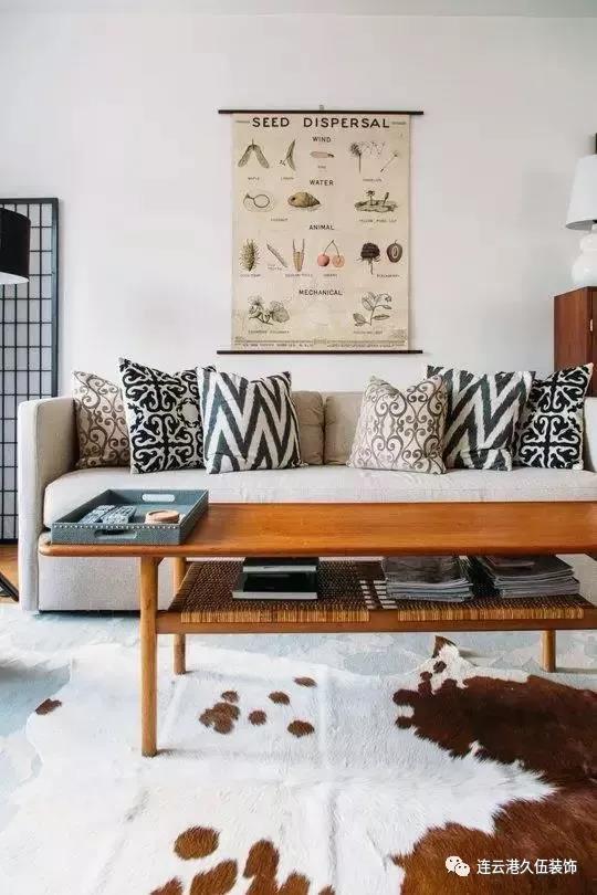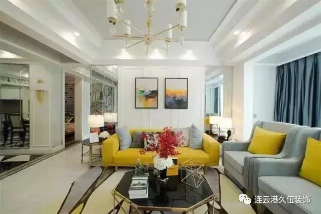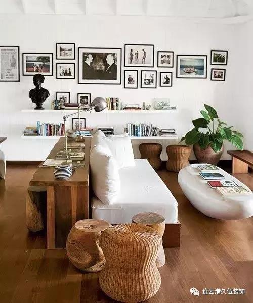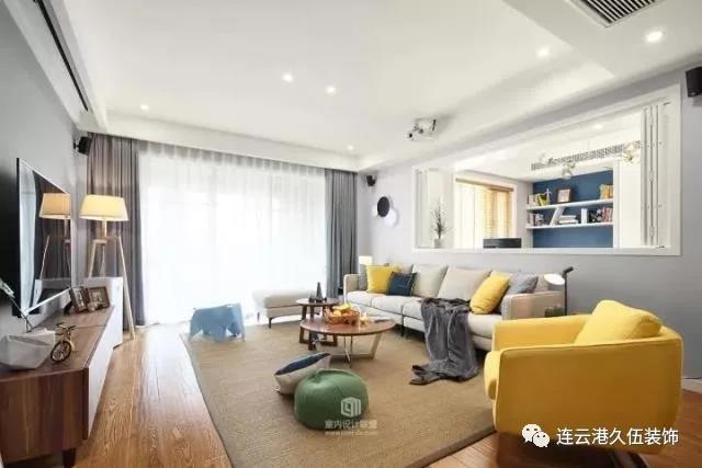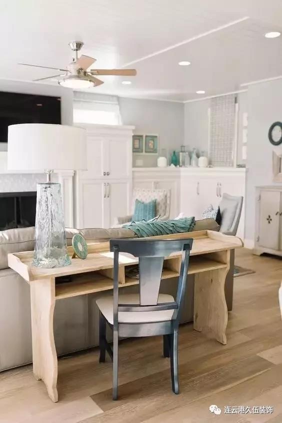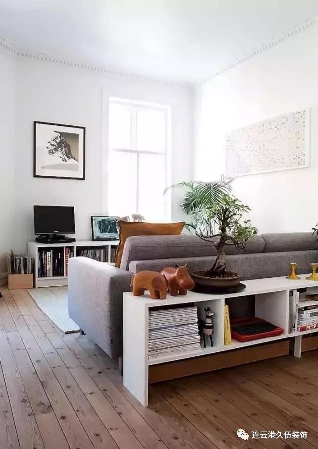 许多时候,沙发是否靠墙,是你说了算,甚至你可以让沙发只有一半靠墙,那么,你完全可以发挥想象空间进行设计了,沙发墙可以是空气,也可以是一个矮柜,一个半高隔断,也可以是半面墙。