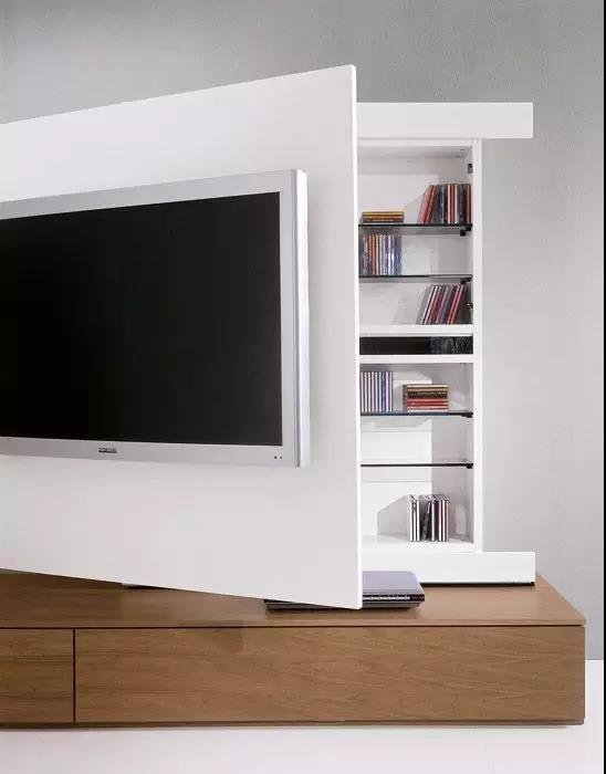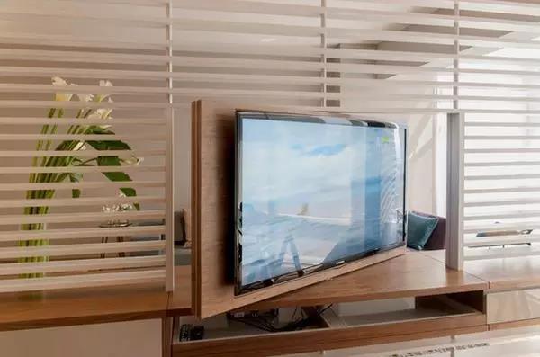 ▲还有人设计了升级版的旋转电视墙,整面墙都能旋转。不动时,它是一个很好的隔断,旋转后,在卧室也能看电视,两个字“很爽”!