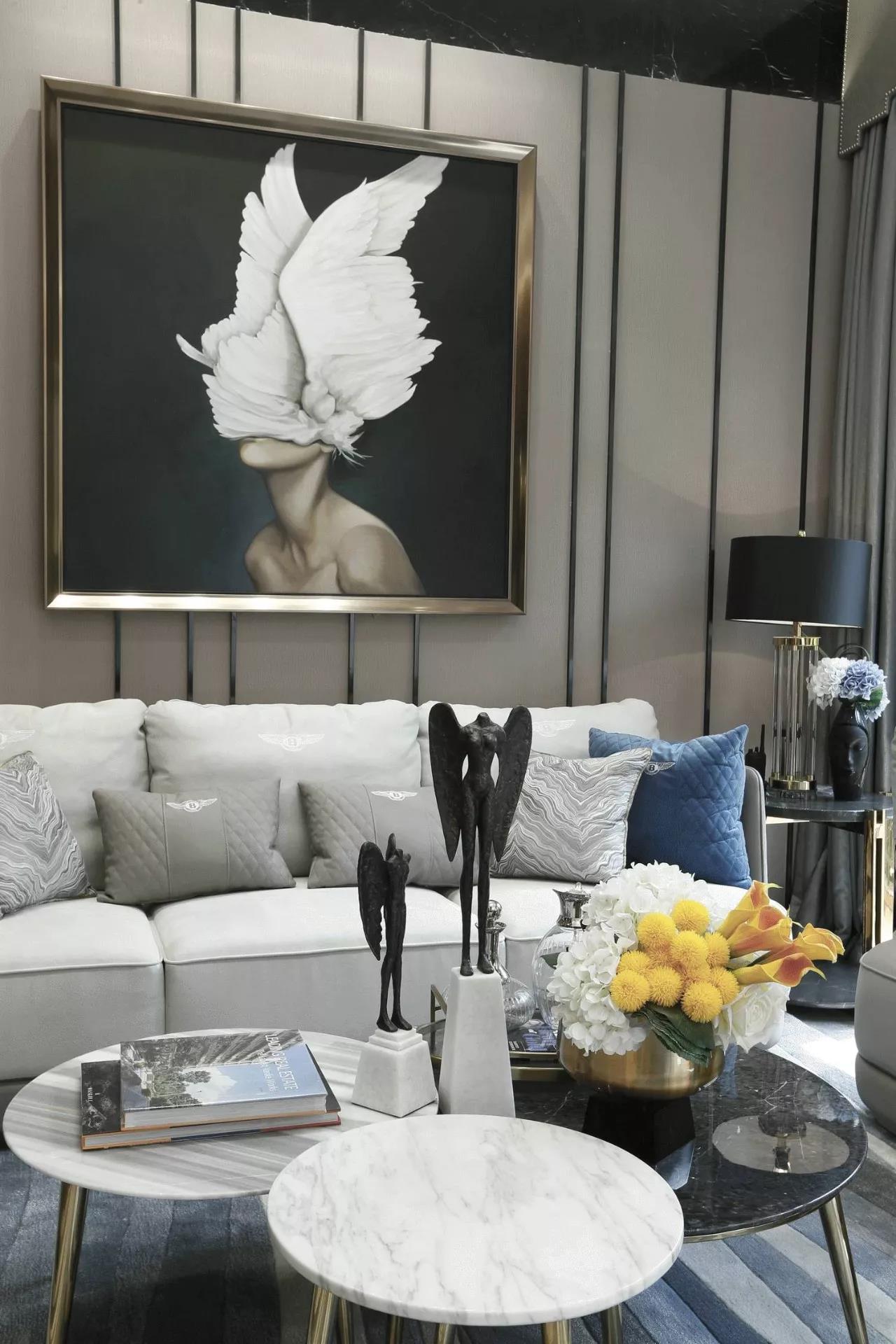 在两个长沙发摆在一起或是沙发的体积很大的情况下,矮茶几则是正确的选择,矮茶几的高度最好和沙发坐垫位置的高度持平。